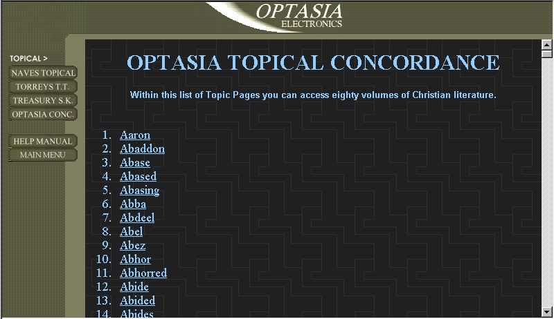 Also, links to the Optasia Topical Concordance are included within the Bible text as seen within all other books on this CD.