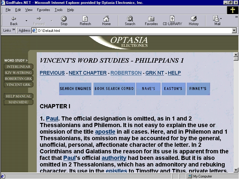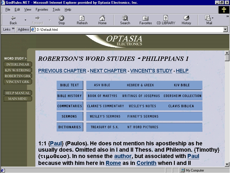 - Verse Master has approximately 9 volumes of Greek study tools. For a quick definition of any given Greek word, use either the Greek Word Index, or use the pop-up Strong's definitions within the Greek New Testament. If you are interested in a more in depth interpretation of a Greek word or phrase in scripture, refer to the correlating Robertson and/or Vincent Lexicons for that chapter of the Bible.