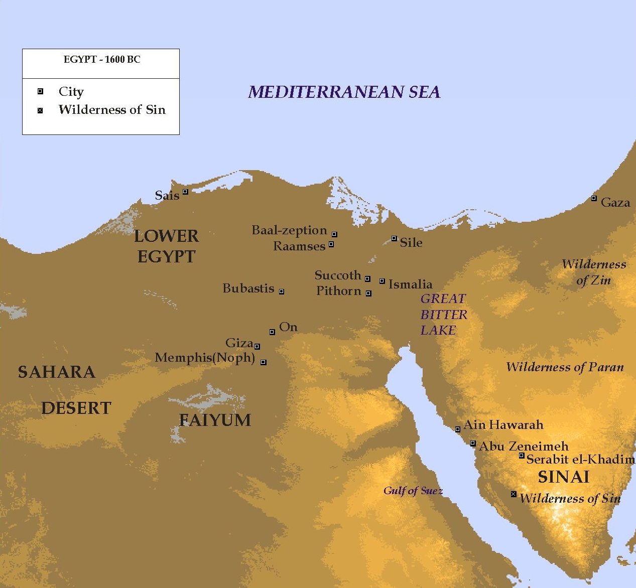 Egypt during the time of Hyksos. (Note - The topographical information represented in this picture was derived from NASA's GTOP030. GTOP030 is a digital elevation model (DEM) created from several raster and vector topographical sources.) |