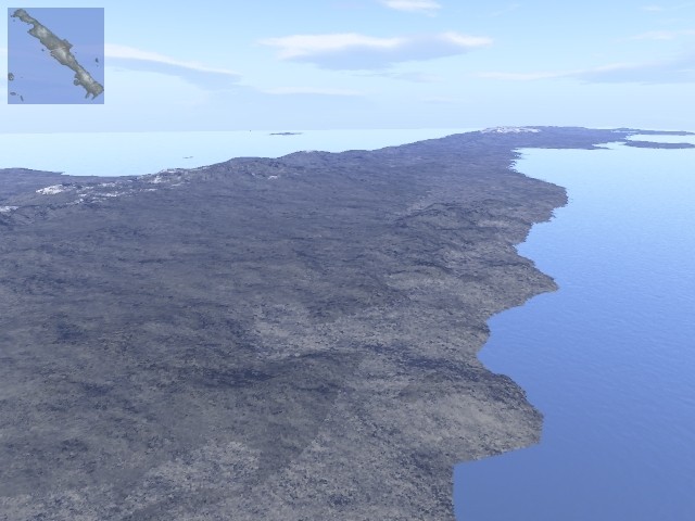 A virtual reality rendering of the island of Crete. (Note - The topographical information represented in this picture was derived from NASA's GTOP030. GTOP030 is a digital elevation model (DEM) created from several raster and vector topographical sources.) |