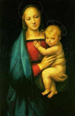 A picture of Madonna and her son Jesus. Painting by Raphael.