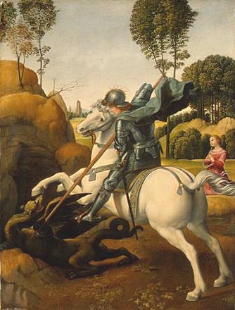 St. George fighting a dragon. Painting by Raphael.