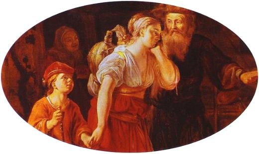 Hagar and her son being sent out into the wilderness.