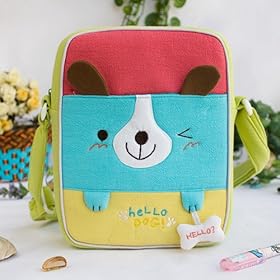 [Hello Dog] Embroidered Applique Fabric Art Shoulder Bag / Swingpack / Travel Bag (8.1*6.5*2.4): Baby
