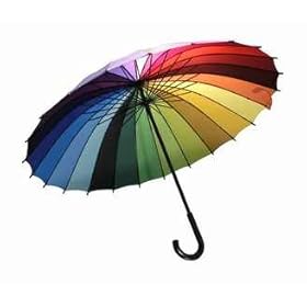 Full Size Multicolored 24 Inch Rainbow Color Wheel Wooden Shaft Umbrella: Everything Else