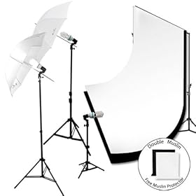 420W Photo Studio Umbrella 3 Light Kit with 10 x 10 ft White Muslin Backdrop, Carry Bag, LimoStudio: Camera & Photo