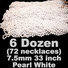 33 inch 7.5mm Round Pearl White Mardi Gras Beads - 6 Dozen (72 necklaces): Toys & Games