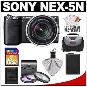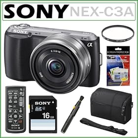 Sony Alpha NEX-C3 Digital Camera (Silver) with Sony E-Mount 18-55mm Lens + SSE Professional Package. Includes: 0.45x Wide Angle Lens, 2x Telephoto lens, 3 Piece Filter Kit (UV,CPL,FLD,) 16GB SDHC Memory Card, Additional Replacement FW50 Battery Pack, Rapid Travel Charger, Pro Tripod, Soft Carrying Case, and much much more: Camera & Photo
