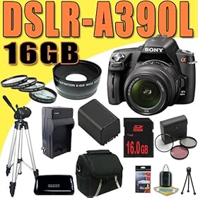 The Professional Photographers Ultimate Accessory Package For The Sony A390 includes: 32GB Hi Speed Error Free Memory Card, Hi Speed Card Reader, Macro Lens Kit, 2 Batteries & Charger, Hard Flower lens Hood, 0.5x Professional Wide Angle Lens , 3.6X Telephoto Lens, 72 Inch tripod, Professional Digital Camera Swivel TTL Flash, Flash Diffuser, Hard Carrying Case, Lens Cleaning Kit, Screen Protectors, Flexible Mini Tripod and More...: Camera & Photo