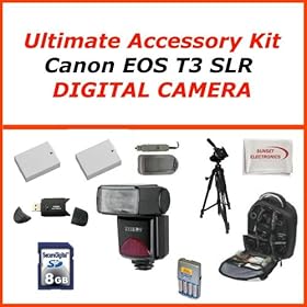 Supreme Accessory Package For Canon T2i, T3i includes: 16GB Hi Speed Error Free Memory Card, Hi Speed Card Reader, 2 Batteries & Charger, Hard Flower lens Hood, 0.5x Professional Wide Angle Lens , 2X Telephoto Lens, 57 Inch tripod, Professional Digital Camera Swivel TTL Flash, Flash Diffuser, Lens Cleaning Kit, Screen Protectors, Flexible Mini Tripod and More...: Camera & Photo