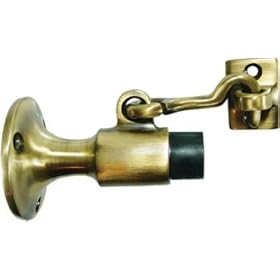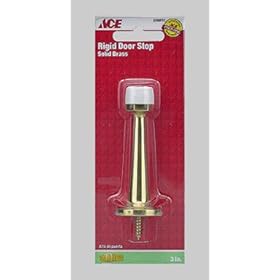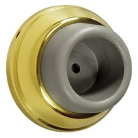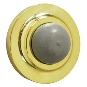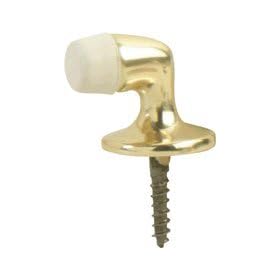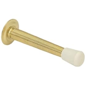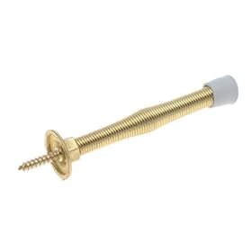 1 , Flexible Door Stop, Polybagged, Bright Brass, Spring Door Stop, about, 3.6"L, .7"acrost Mounting Flange, with, Attached,.6"Screw,: Office Products