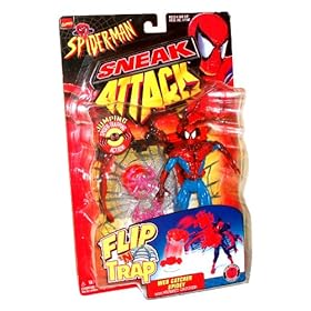 ToyBiz Year 1998 Marvel Comics Spider-Man Sneak Attack Flip "N Trap 6 Inch Tall Action Figure Set - Variant WEB CATCHER SPIDEY (Red and Blue Costume) with Webnet Catcher and Jumping Spider-Trapping Action Plus Bonus Sneak Attack Sticker Inside: Toys & Games
