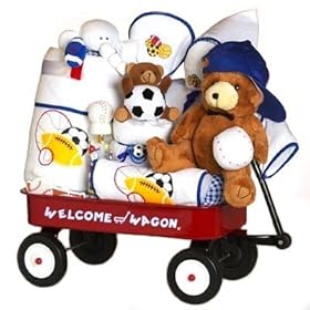 Sports Themed Wagon - Baseball Basketball Football and Soccer Ball Theme - New Baby Boy Shower Gift Idea for Newborns: Baby
