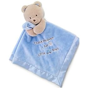 Lovey Snuggle Buddy Security Blanket "Thank Heaven for Little Boys" Teddy Bear by Okie Dokie: Baby