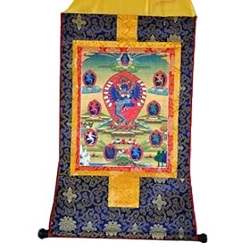 MEDICINE BUDDHA MANTRA THANGKA ~ Tibetan Embroidered Wall Hanging ~ "Tayata Om Bekanze Bekanze Maha Bekanze Raza Samungate Swaha" ~ Mantra For Health & Healing: Home & Kitchen