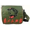 Traditional Chinese Army Messenger Bag Reproduction with Calligraphy Flap: Clothing. Each bag has a large red star and calligraphy (Serve the People) on the flap. Large Army messenger bag to carry your things in. Available in white, green, or black.