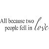 All because two people fell in love wall art wall sayings: Baby. By applying your favorite sayings directly to your walls you will create daily inspiration with a beautiful hand-painted look. Wall sayings and designs are the latest trend in interior decorating and home decor. It is an easy and creative way to add personality and charm to Any Room! Vinyl Lettering is a creative way to transform any room into a stylish, unique space. The graphic is ready to apply and is cut from high quality Avery vinyl film with a outdoor life of 6 yrs and should last for a very long time indoors (25+yrs.).