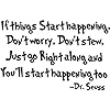 Dr Seuss Youll miss the best things if you keep your eyes shut wall art wall sayings: Baby. By applying your favorite sayings directly to your walls you will create daily inspiration with a beautiful hand-painted look. Wall sayings and designs are the latest trend in interior decorating and home decor. It is an easy and creative way to add personality and charm to Any Room! Vinyl Lettering is a creative way to transform any room into a stylish, unique space. The graphic is ready to apply and is cut from high quality Avery vinyl film with a outdoor life of 6 yrs and should last for a very long time indoors (25+yrs.).