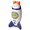 • This rocket- shaped timepiece projects a digital clock display against detailed galactic images on any wall or ceiling