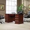 Sauder Heritage Hill 5 Shelves Bookcase in Classic Cherry Finish: Office Products. Unquestionably executive in appearance, this desk offers the durability of a heat, stain and scratchresistant work surface. Warm and inviting, this collection has been designed for those seeking a classic English look to complement any home or office decor. It is crafted from a cherry laminate that is highlighted by attractive brassfinish hardware. The hutchs elegant glass doors enclose a cabinet with a builtin light that illuminates displays, and the credenzas doors conceal your work space when not in use. For your convenience, the hutch, credenza, and bookcases all include adjustable shelves.