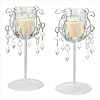 Set of 2 White Elegant Bead Wrought Iron Pillar Candle Holders [Misc.]: Home Improvement. Candle not included. This refined wrought-iron candle stand boasts a glamorous dash of old-time Parisian elegance! Slender ivory curlicues form a stylish support for a thick pillar candle; lavish swags of glittering crystals turn the light into a dancing diamond display! Iron with acrylic beads. Set of 2.