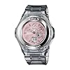 Casio Womens BGA110-1B Baby-G Shock Resistant Black and Silver-Tone Analog Sport Watch: Casio: Watches. A shock-resistant black resin case and band feature silver-tone accents. The pink dial of the Casio Women's Baby-G Shock Resistant Black and Silver-Tone Analog Sport Watch adds a feminine touch to this athletic watch. The analog display features silver-tone Arabic numerals and digital subdials at the three, six, and nine o'clock positions. The day, date, month, 12 and 24-hour timekeeping are display features on this timepiece. The silver-tone luminous hands and LED light with afterglow make it easy to read the display night or day. This watch features five daily alarms, a countdown timer, and 1/100 second chronograph functions. This watch offers reliable Japanese quartz movement and is protected by a durable mineral crystal.