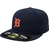 MLB Detroit Tigers Authentic On Field Game 59FIFTY Cap (Navy): Sports & Outdoors. On the street, New Era is known as the Originator of the True Fitted for its signature cap style, the 59FIFTY. The official on-field cap of Major League Baseball, New Era's 59FIFTY cap is the same one that is worn by all the major leaguers on the team. This fitted cap with closed back features New Era's CoolBase performance polyester, which has a wool feel to it but offers enhanced moisture wicking, drying and shrink resistance. It has a raised, embroidered team logo on the front of the cap, a durable, bendable bill with black underside to help minimize glare from the sun, and a CoolBase moisture wicking black sweatband. It's finished with a stitched Major League Baseball logo on the rear. Made in the USA. About New Era Founded in 1920, the New Era Cap Company is the leading headwear manufacturer and creator of New Era Apparel, products that transcend time, culture, sport, and fashion. Producing more than 35 million caps per year, New Era is the exclusive manufacturer and marketer of the official on-field cap worn by every Major League Baseball team and their Minor League affiliates. The company is headquartered in Buffalo, New York and operates facilities in Alabama, Canada, Europe, Japan, and Hong Kong.