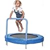 Diggin JumpSmart Trampoline: Toys & Games. Bright colored bumper pads wipe clean easily. The JumpSmart Trampoline is the perfect indoor excerciser for children. It's triangular shape makes it so easy to store, and it has a split handle for extra support. Weight limit is 80 lbs. Dimensions are 37.75 inch x 42.75 inch x 35.50.