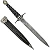 Irish style Ring Pommel Dagger / Knife / Athame: Everything Else. This piece is not shipped sharp, and is not sturdy enough for stage or live-steel action, but its graceful and understated design is perfect for costuming, display, or ritual use. This is a beautifully simple and classic design, reminiscent of the heavy swords carried by the Gaelic people during the middle ages. These swords often had an open ring pommel, which now is associated with their weaponry. The traditional Irish styling makes a wonderful display or costuming piece, or a serviceable athame or ritual knife. 15.75 inch overall with a 9.5 inch stainless steel blade, this dagger features pewter toned ring pommel and straight guard. The grip and sheath are both of resin moulded into a pebble-leather texture. The sheath is detailed with pewter toned fittings. The knife and sheath are black.