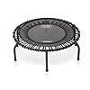 The JumpSport Fitness Trampoline Model 350 Non-Folding with FlexBounce III: Sports & Outdoors. This allows for a wider variety of exercises and the stacking of multiple units for compact storage. Enjoy a fitness regimen that's fun for the whole family with The Fitness Trampoline 350 from Jumpsport, which offers an elegant look for your home with its silver frame and arching black legs. This 350 model has a 33.5-inch Permatron mat jumping area, which extends over the elastic cords. This Jumpsport trampoline features dual elastic cord technology. EnduroLast 4 cords designed to last over 4 million bounces and are warrantied for 4 years, while the FlexBounce III technology allows you to adjust the mat firmness between three different settings. Jumpsport's patent-pending, arched legs provide an exceptionally stable and safe platform, compared to straight-leg rebounders. The virtually silent bounce allows you to use this anytime, day or night, and the 350 comes with a Basic Workout DVD for a smooth, exhilarating exercise routine. The included Fitness Trampoline Basic Workout DVD provides you with the following exercise routines: Warm-up & Stretching, Cardio, Strength, Upper Body, Core, and Handle Bar.