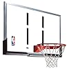 Lifetime 71526 Competition Square Shatter Guard Basketball 54-Inch Backboard and Slam-It Pro Rim: Sports & Outdoors. This combo comes complete with a blow molded plastic frame pad for protection. Hone your jumpshot in your driveway or invite some friends over for some spirited two-on-two with the Lifetime Competition 54-inch backboard and rim combo. The square Shatter Guard backboard--which integrates a clear playing surface with a high-quality steel frame--is made of Makrolon polycarbonate, which is virtually unbreakable and 30 times stronger than acrylic. As a result, broken backboards are a thing of the past, even from errant rocks and other non-basketball threats. The arena-style orange Slam-It Pro Rim, meanwhile, is designed specifically for players who like to throw down. The rim features wraparound bracing and double-compression springs that give way during dunks to protect the player, then spring back once released. Other details include fade-resistant UV-protected graphics; a powder-coated black-hammertone-finished steel backboard frame that adds rigidity for improved rebound; a blow-molded plastic frame pad for protection; and an all-weather nylon net. The set comes with a five-year warranty. Amazon.com Basketball System Buying Guide With the high-quality construction of many portable basketball systems, turning your driveway into a basketball court can be as simple as hooking up your garden hose. But while a portable system may ultimately be your best choice, there are reasons you may want to consider an in-ground or wall-mount system before you decide. In-Ground Systems In-ground systems are permanently cemented into the ground--either via a bolt mounting kit or directly into the ground--and are generally more rigid and take up less space than portables. In-ground systems often require that you hire a professional to complete the task, but when the cement dries you'll have a hoop that can take punishing dunks with ease. Many in-ground systems are height-adjustable, include removable post features that let you take the system down for off-season storage, and feature heavy-duty break-away rims. You'll also want to research the adjustable mechanisms on the systems, as there are several types to choose from. Some feature a counter-balance spring that lets you perform easy, one-hand adjustments while others may feature a sturdy, pneumatic system. Wall-Mount Systems Wall-mount systems can be mounted to the side of a house, a tall retaining wall, or a garage. Generally sturdier than portables, wall-mounts have the added advantage of optimizing your existing ground space for the court, since you won't take any space up with the base or pole. Not all systems include the necessary hardware, so make certain you add a mounting kit to your list. Portable Systems Portable systems require minimal installation and offer ultimate convenience. These systems generally feature a base that can be filled with sand or water to stabilize them and include wheels for portability. Although they are not as sturdy as in-ground or wall-mounted hoops, portables are simple to set up and can often be folded for convenient storage. Backboard Considerations Regardless of which system you choose, you'll want to brush up on Backboards 101. Most residential systems feature backboards made of acrylic, fiberglass, graphite, or various other composite materials. While clear acrylic gives the professional look and feel of glass, it is not as rigid as fiberglass or graphite. Some systems may offer steel or aluminum backboards, which are virtually vandal resistant, but don't offer the true rebounding action. The regulation size of an NBA backboard is 72 inches wide and 42 inches high. Most portable hoops are 42 or 44 inches wide and 3[6140] Lifetime's Competition 54 inch Shatter Guard basketball backboard offers a clear 54 inch x 33 inch x 1 inch square Shatter Guard backboard screen printed with UV-protected inks for fade resistant color. The backboard frame is built with the highest quality steel and features a black hammertone powder coating that is rust and scratch resistant. The Arena-Style Slam-it Pro Rim features wraparound bracing supporting a 5/8 inch ring of solid steel, double compression springs to provide spring-back action, welded steel net hooks and an all-weather nylon net. 5 year warranty that covers everything on the system.