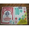 Marinoff Low Vision Poker Size Playing Cards ** 2 DECKS **: Health & Personal Care. This is a standard poker-sized deck of cards, measuring 3-1/2 inch X 2-5/8. You will receive (2) Packs of Marinoff Low Vision Poker-Sized Playing Cards. One deck each of Red and Blue. About Marinoff Low Vision Playing Cards: Arguably, this is the best deck of playing cards out there for visually impaired card players. Designed by the ophthalmologist, Dr. Gerald Marinoff, the printing on these cards makes it easier for low vision individuals to see the numbers and suits. The icons are over-sized, which is great for kids or adults. But the winning feature of these cards is the 1-1/4 inch high numbers and letters - and the black outline that surrounds them. The cards themselves are both durable and plastic-coated, for long-lasting play.