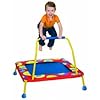 Toddler Trampoline with Handle: Toys & Games. For ages 1-3, up to 35 lbs. Now toddlers can jump-jump-jump, too! We took our best-selling preschoolers' Safety Trampoline and scaled down for little ones. Our toddler trampoline is built for safety, with a hold-on grab bar, soft grip handle, padded edges, and our signature, screw-on legs (so much sturdier than folding legs). The sweet spot inch is marked, guiding kids where to stand. More than a kid-pleasing energy buster, our mini trampoline builds balance and coordination. Easy assembly. Designed by OneStepAhead!The trampoline's handle helps kids hold on more securely.