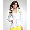 Picot Tennis Shorts - BEBE SPORT: Clothing. Rise: 9. Drawstring at waistband, picot and yellow trim, and full interior lining with hidden tennis ball pockets make this bebe style a stylishly sporty-chic way to go for the win. Constructed for high-impact activity from resistant moisture-wicking fabrics. Inseam: 3.