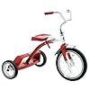 Radio Flyer Classic Red Dual Deck Tricycle: Toys & Games. Apparently they do still make them like they used to. With its fully retro design, faithfully reproduced down to the smallest detail, this cherry-red, rubber-wheeled tricycle is an undisputed classic. The rugged trike features a chrome front fender; a double-deck, step-in back (so kids can climb onto the smooth metal seat in a snap); red-and-white tassels on the rubber-coated handlebars; a 12-inch-high, steel-spoked wheel; and even an old-fashioned bell.