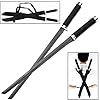 28 TWIN BLADES BLK NINJA FULLTANG SET : Sports & Outdoors. 28in Overall, 18.25in Blade, 7.75in handle.Twin ninja blade with black nylon wrap handle.Japanese inscription (Ninja double blade) on black stainless steel blade.Includes nylon shoulder strap.