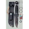 United Cutlery Bush Master Survival Knife: Sports & Outdoors. Meanwhile, the knife's handle guard detaches to release a survival kit with sewing needles, band-aides, matches, a surgical blade, and a magnifier. The United Cutlery Bush Master Survival Knife is more than just a hunting/survival blade--this 15.25-inch fixed blade knife carries an entire survival kit contained within its handle, hand guard, and sheath--to keep you covered on any adventure. Built to last with quality and usability in mind, the knife features a 10-inch, clip-point blade of 420 stainless steel with a plain edge for slicing and a heavy-duty serrated edge for sawing. The knife has a durable cast metal handle that has a precision compass built into the butt cap. The protective nylon sheath holds a GI can opener, a sharpening stone, an animal snare, a snakebite kit, and a flashlight. Knife Specifications: Total Length: 15.25 inches Blade Length: 10 inches Blade Material: 420 Stainless Steel Blade: Clip point, straight edge, and saw back edge Handle Material: Black cast aluminum Push tang construction Compass built into the butt cap Detachable hand guard Nylon sheath Survival Kit Components: Precision compass G.I.