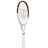 Wilson 2012 Federer 110 Tennis Racquet - Red/Black/White: Sports & Outdoors. Frame: titanium alloy Strung weight: 10.2 oz Head size: 110 sq. Signed by Roger Federer, this titanium-alloy tennis racquet has Volcanic Frame technology for power and stability, frame stabilizers for control and accuracy, and a Cushion Pro Grip for comfort. The racquet weighs 9.9 ounces and measures 27.5 inches long, with an oversized 110-square-inch head and factory stringing. in Length: 27.5 in.