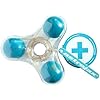 Astrojax Blue Diamond: Toys & Games. -- Each set comes with a trick sheet and an aj-dos (Astrojax Docking Station), which is useful for carrying or storing your Astrojax. The Spectacular Night Version of Astrojax -- In this exhilarating version of Astrojax, each of the three balls features two bright LEDs that create dazzling light patterns when you play. -- With a simple switch of a button, the LEDs, which come in three different colors, can be switched on and set to either continuous mode or disco mode. CONTINUOUS mode creates patterns reminiscent of beautiful bengal light effects, while DISCOTM is a strobe effect that produces sparkling light traces in space. -- The Blue Diamond's string is an ultra-sensitive neon dayglow orange that causes laser-like string effects in black light. The Blue Diamond sports a patented construction with precision-machined metal weights, durable polycarbonate shells and a specially tailored chip inside with replacable batteries. Includes 3 Saturn batteries per ball.