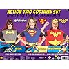 Boys Superhero Costume Set: Clothing. These superhero Superman, Robin and Batman polyester pullovers each have their individual logo printed in the front while a cape is attached to each back. Contribute to both The Justice League and Teen Titans with this action trio costume set. The costumes each include their own items: Batman has a headpiece, Superman comes with boot covers and Robin includes both gauntlet sleeves and an eye mask.