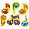 Music Foam Sticker Shapes: Toys & Games. Our Foam Music Sticker Shapes range in size from 1 - 2 inches and come in packages of 45 in assorted colors of orange, yellow, black, white, green, red and blue. These Foamies Music Sticker Shapes feature a variety of musical designs such as a piano, keyboard, guitar and music notes.