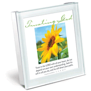 Encourage yourself with daily verses that focus on trusting in the Lord, in a collection of 3.5" x 3.25" photo cards to display on your desk or dresser. Sleek glass and chrome frame, with soft mint border holds 30 uplifting verses, with a brief devotional paragraph on the reverse side. Each card is accented with floral bloom photos in a bright array of color. Felt protection on base; boxed for giving. All Scripture quotations are from the NLT.