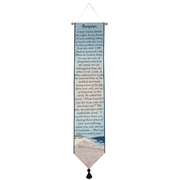 The beloved Footprints poem has been paired with calming seashore artwork on our decorative woven tapestry bell pull. 6.75" x 41" with wooden display dowel, pointed tip, and silky tassel embellishment; adds beauty to even a narrow wall space. Polyester; spot clean only; made in the USA.