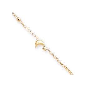 14k Polished Dolphin Anklet - 10 Inch - JewelryWeb: Jewelry