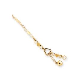 14K Gold and Hearts Anklet, 10 Inch: Jewelry