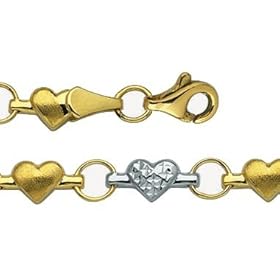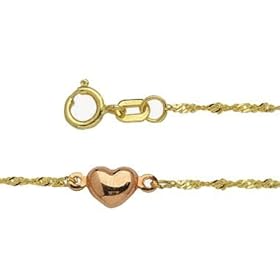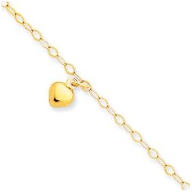 14k Heart Link Anklet - 9 Inch - JewelryWeb: Jewelry