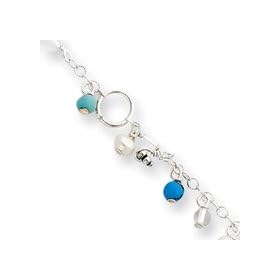 Created Turquoise Bead FW Cult. Pearl Anklet Bracelet -9 Inch - Spring Ring - JewelryWeb: Jewelry