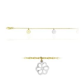 Tri Color Flower Designer Dangling Anklet in 14K Three Tone Gold: Jewelry