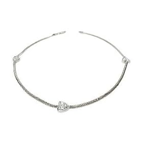 14K White Gold Snake Anklet Bracelet 10", with Heart Design Stations Set with Diamonds: Jewelry