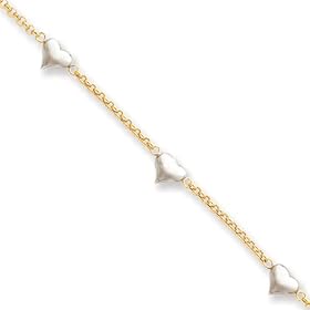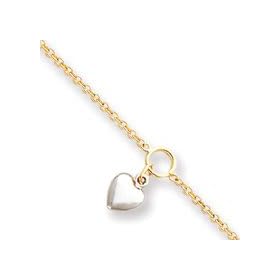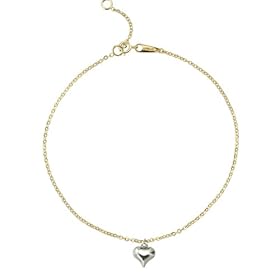 Bonded 14k Two-Tone Gold and Silver Heart Anklet: Jewelry